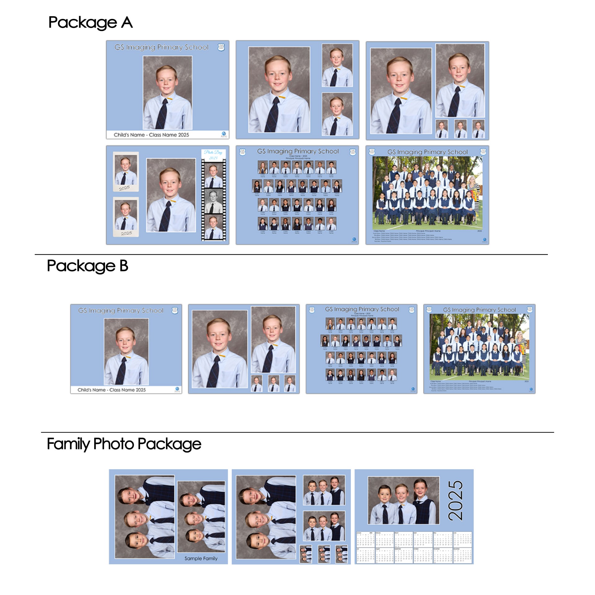1. Select the packages you wish to purchase on the envelope provided by your school.